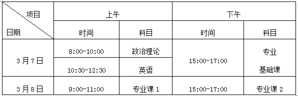(五)普通高校本科插班生招生考试时间为2020年3月7日(星期六)至8日(星期日)两天,具体安排见下表:
